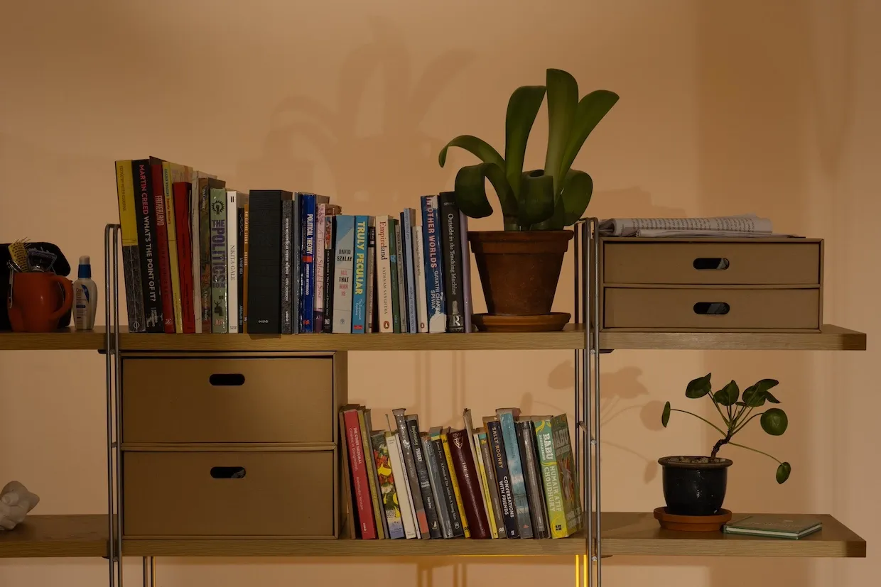 In Everything I Lived With, the items from Hoque’s sparse bedroom in London are assembled as he remembered them during his absences. Hanging over the bed is a cardboard lampshade in the shape of the debating chamber of the Bangladeshi parliament building. On the surrounding walls are facsimiles of travel tickets to and from Dhaka, their dry bureaucratic language of name, time and destination superimposed over vibrant images recreating the feelings evoked during passages between the two cities.