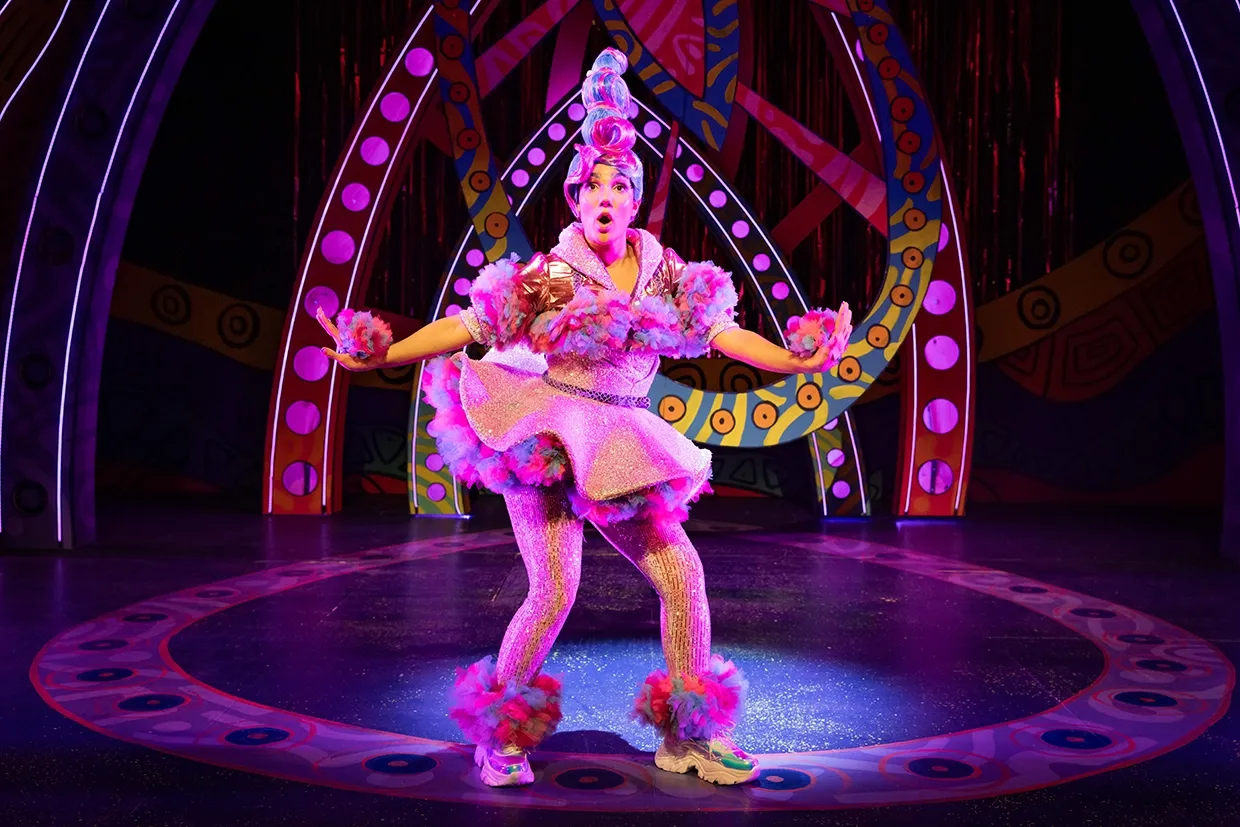 As the lights dimmed, the stage burst into life. The set design, a vibrant collision of funhouse neon and textile-inspired patterns, instantly transported us into a dreamier version of Stratford: the world of Mama Goose.